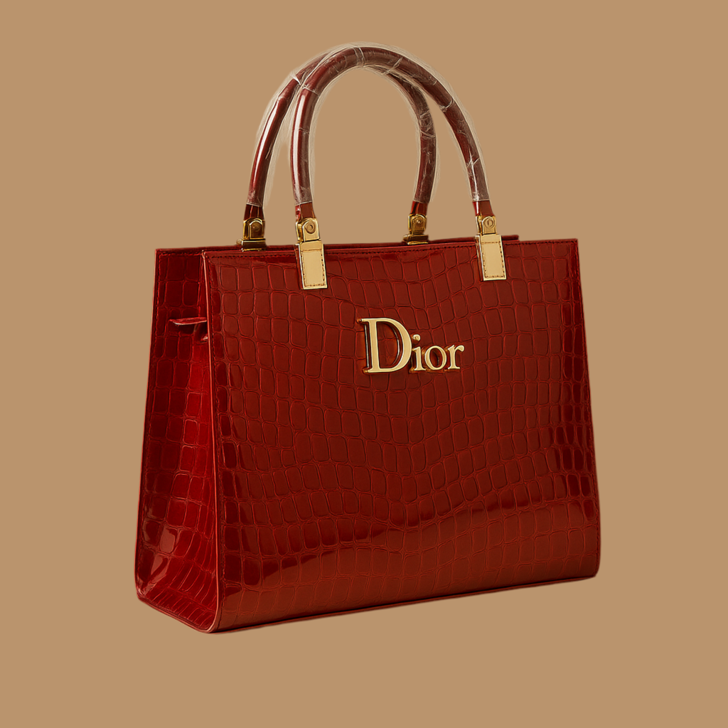 The Glossy D- Handbag is a statement piece designed to elevate your style. Crafted from premium glossy croc-textured leather, this tote features a structured silhouette, elegant gold-tone logo, and sturdy handles for comfortable carrying. Its spacious interior makes it ideal for work, shopping, or casual outings.